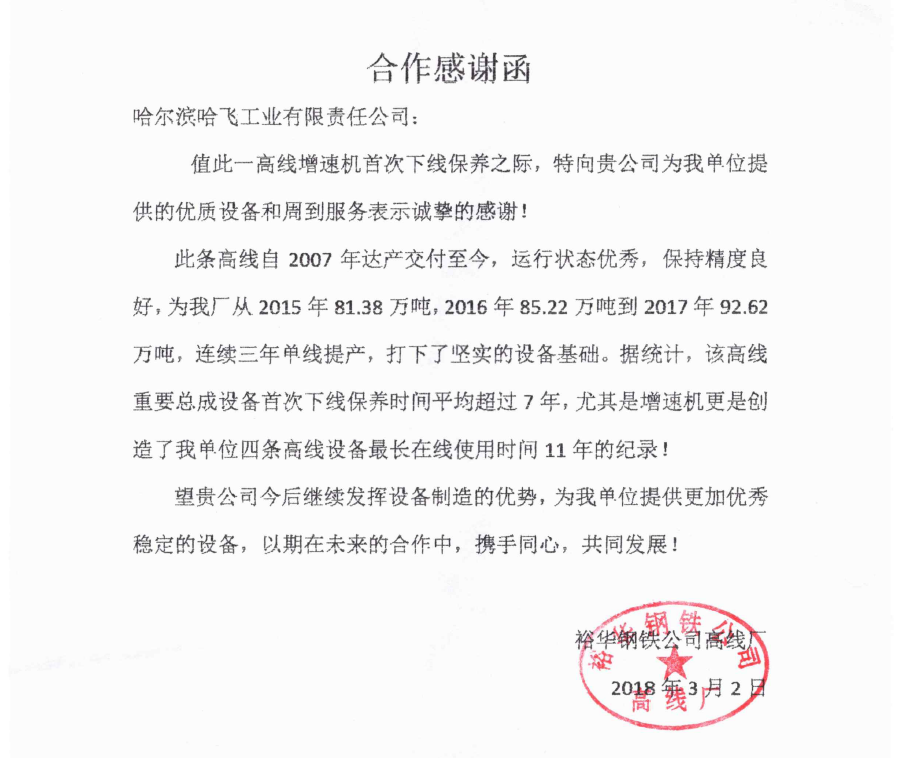 哈爾濱哈飛工業(yè)有限責(zé)任公司旗下的機(jī)電設(shè)備制造產(chǎn)業(yè)是目前國(guó)內(nèi)規(guī)模大、專業(yè)的高速線材軋機(jī)和棒材軋機(jī)整機(jī)及備件的生產(chǎn)制造企業(yè)。公司現(xiàn)坐落于哈爾濱市平房區(qū)汽車零部件工業(yè)園B區(qū),占地面積30000多平方米。現(xiàn)有員工近550人,其中具有中高級(jí)職稱的研發(fā)及工程技術(shù)人員100余人。 公司曾獲得冶金部授予的“高線軋機(jī)設(shè)備優(yōu)單位”稱號(hào)、國(guó)家技術(shù)進(jìn)步二等獎(jiǎng)等獎(jiǎng)項(xiàng),公司生產(chǎn)的十八項(xiàng)高線軋機(jī)重要部件通過(guò)了技術(shù)鑒定... +MORE